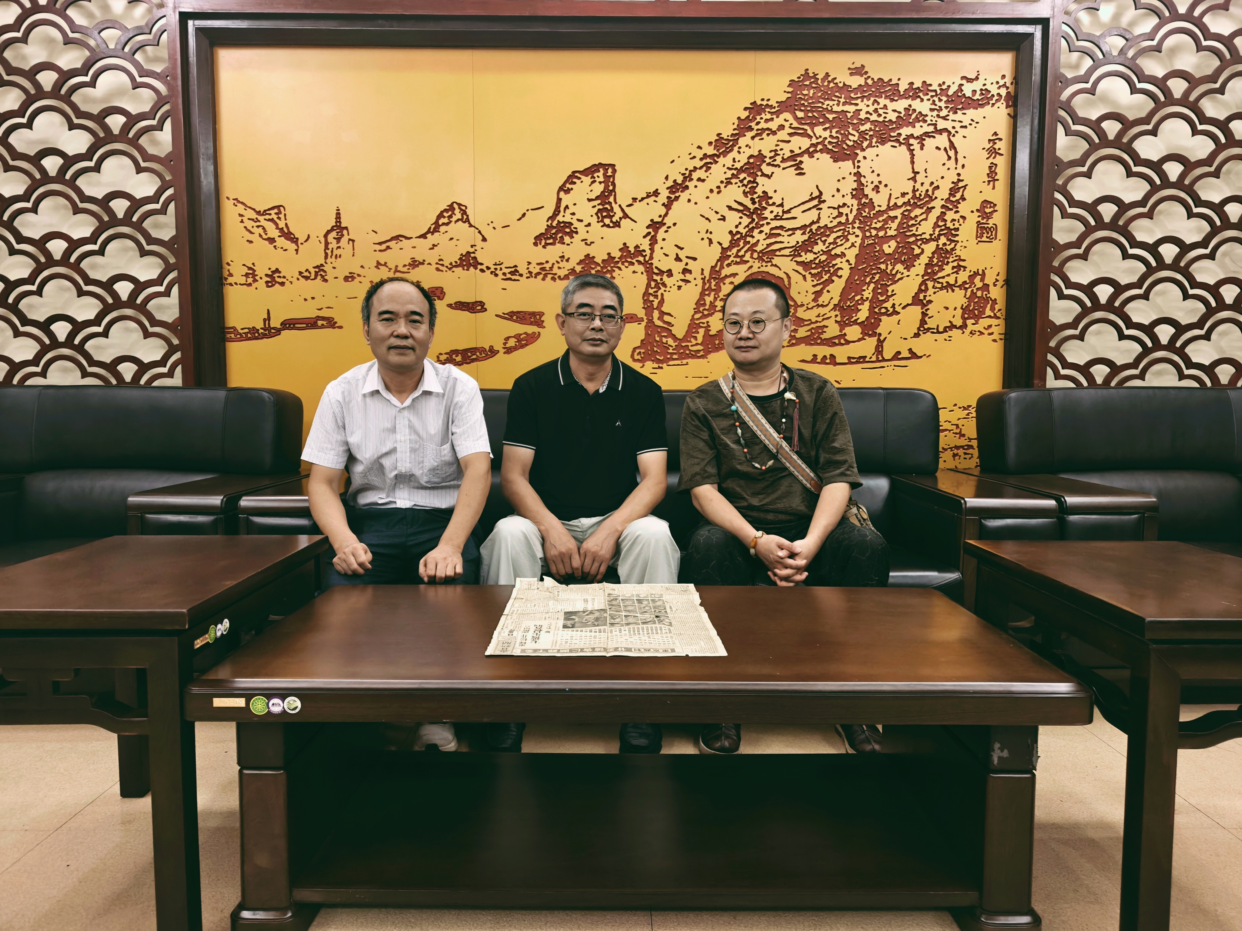 我馆党支部书记、馆长时建红(照片正中),业务部主任唐军富(左一)出席此次捐赠仪式,代表我馆接受谢杭波(右一)先生捐赠
