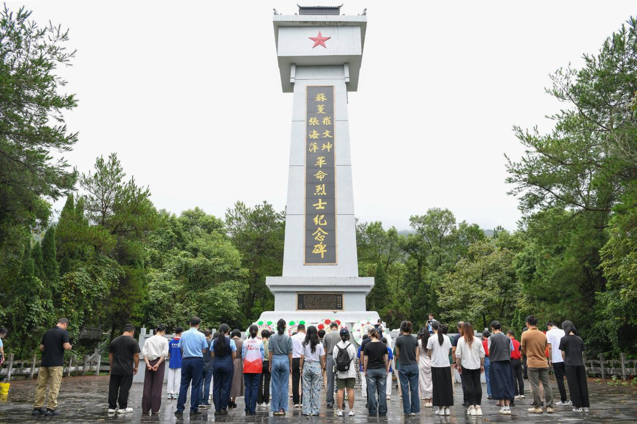 活动最后,“缅怀先烈志・砥砺前行路”革命烈士纪念碑祭扫将现场氛围推向高潮。全体人员赴桂林市叠彩区尧山苏蔓、罗文坤、张海萍革命烈士纪念碑肃立默哀、敬献花圈,全体党员重温入党誓词。宝湖中学学生动情讲述三位烈士在桂林开展地下抗日工作、英勇献身的事迹,结合历史情景再现,使每一位参与者深切感受到革命先烈坚定的理想信念和崇高的牺牲精神。