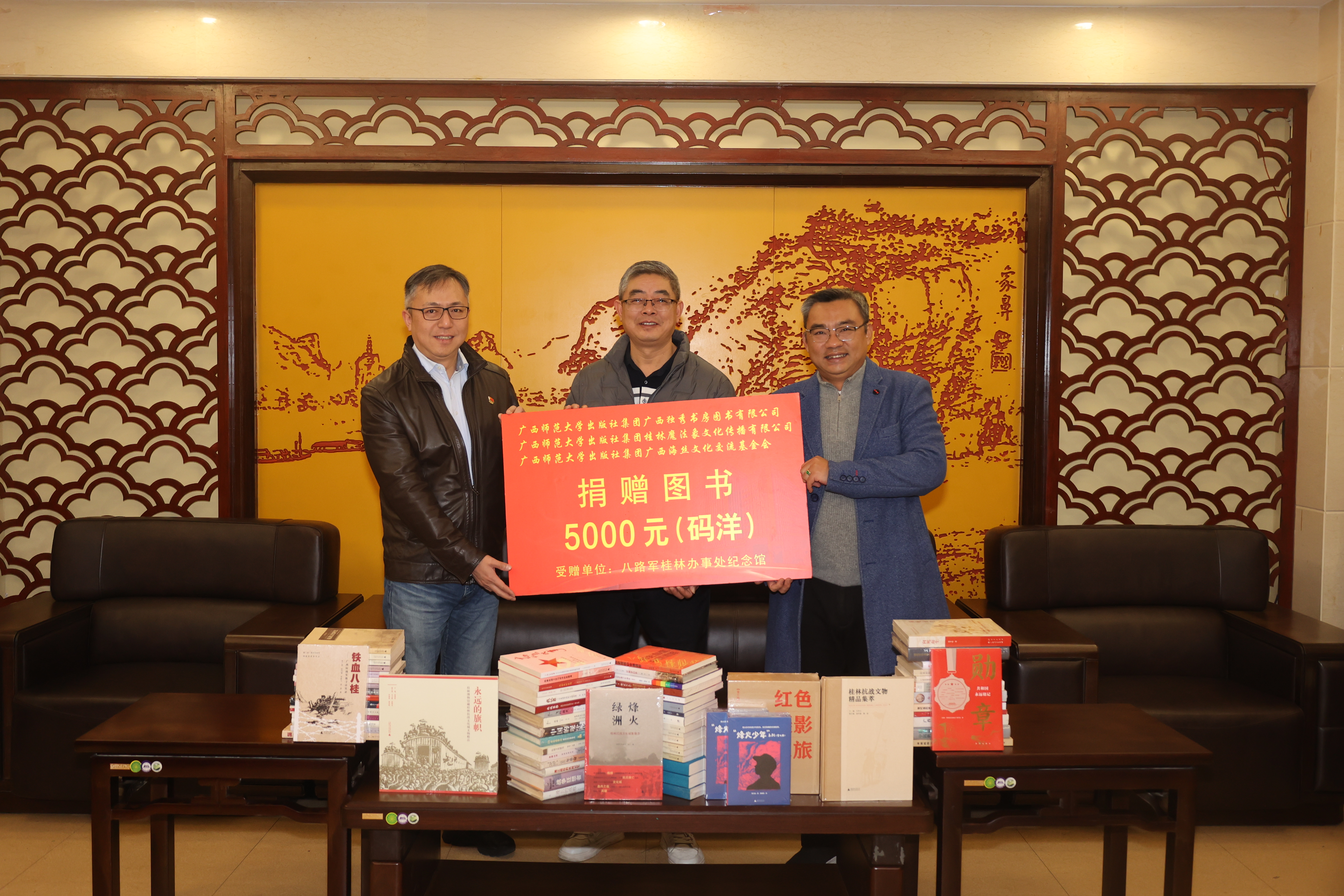 广西师范大学出版社集团向八路军桂林办事处纪念馆捐赠了价值5000元的红色文献及文化书籍,涵盖革命历史、党建读物等多个类别,为纪念馆丰富展陈内容、完善红色文献资源库注入新鲜血液。这些书籍将作为“流动的红色课堂”载体,助力纪念馆更好地满足观众对红色文化知识的学习需求,让革命故事以更鲜活的方式浸润人心。