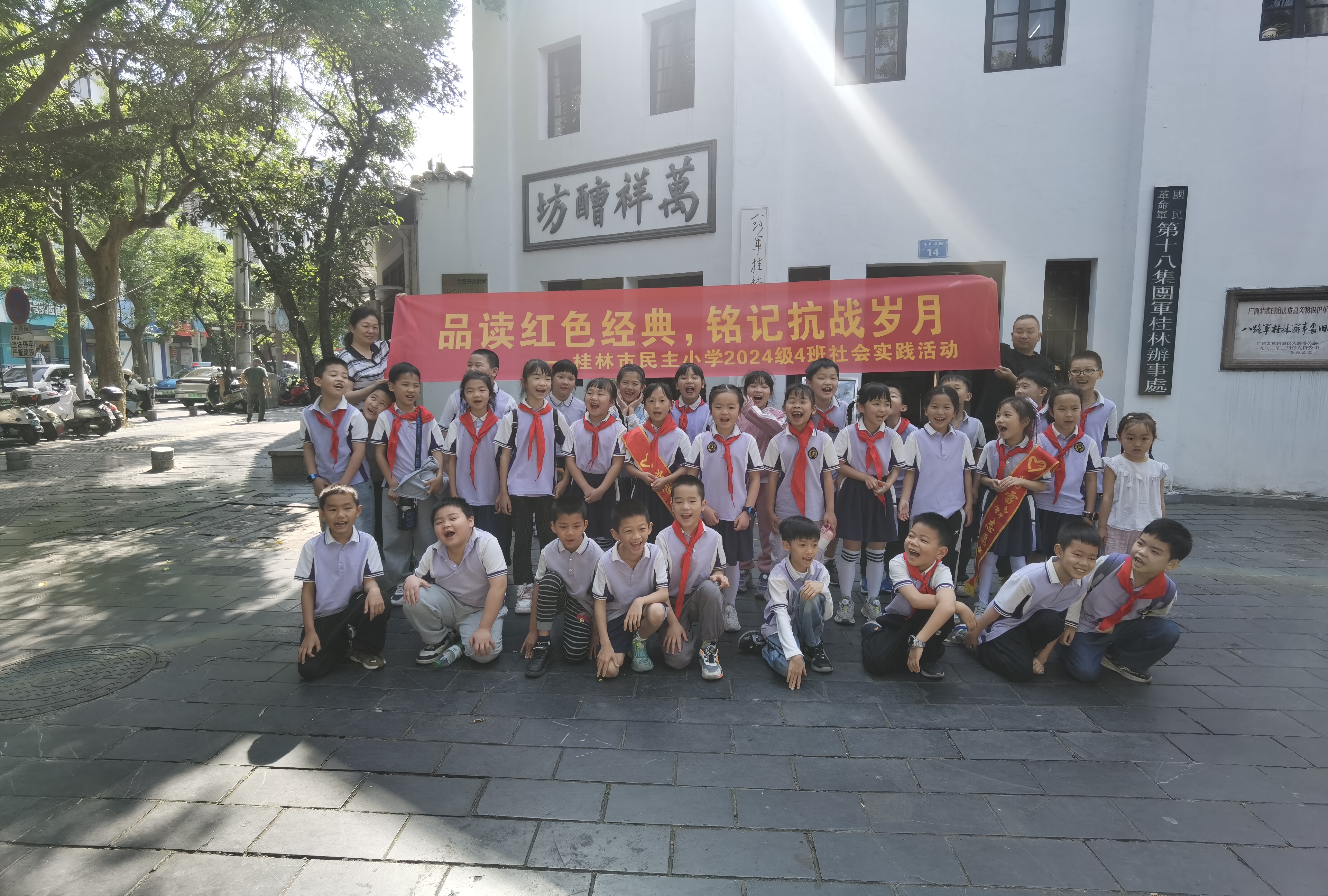 2026年4月26日,桂林市民主小学2024级4班走进八路军桂林办事处纪念馆,开启了一场以“社会主义核心价值观”为主题的红色研学之旅。在讲解员的带领下,孩子们穿梭于复原的历史场景中:斑驳的木质会议桌、泛黄的文件手稿、锈迹斑斑的电台设备……无声诉说着抗战岁月的烽火记忆。