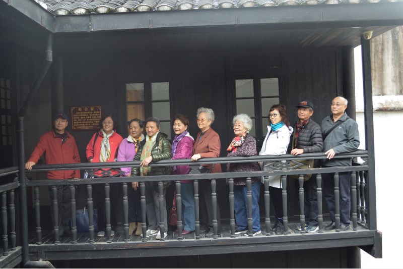 (老同志后代在秘密电台室前合影)