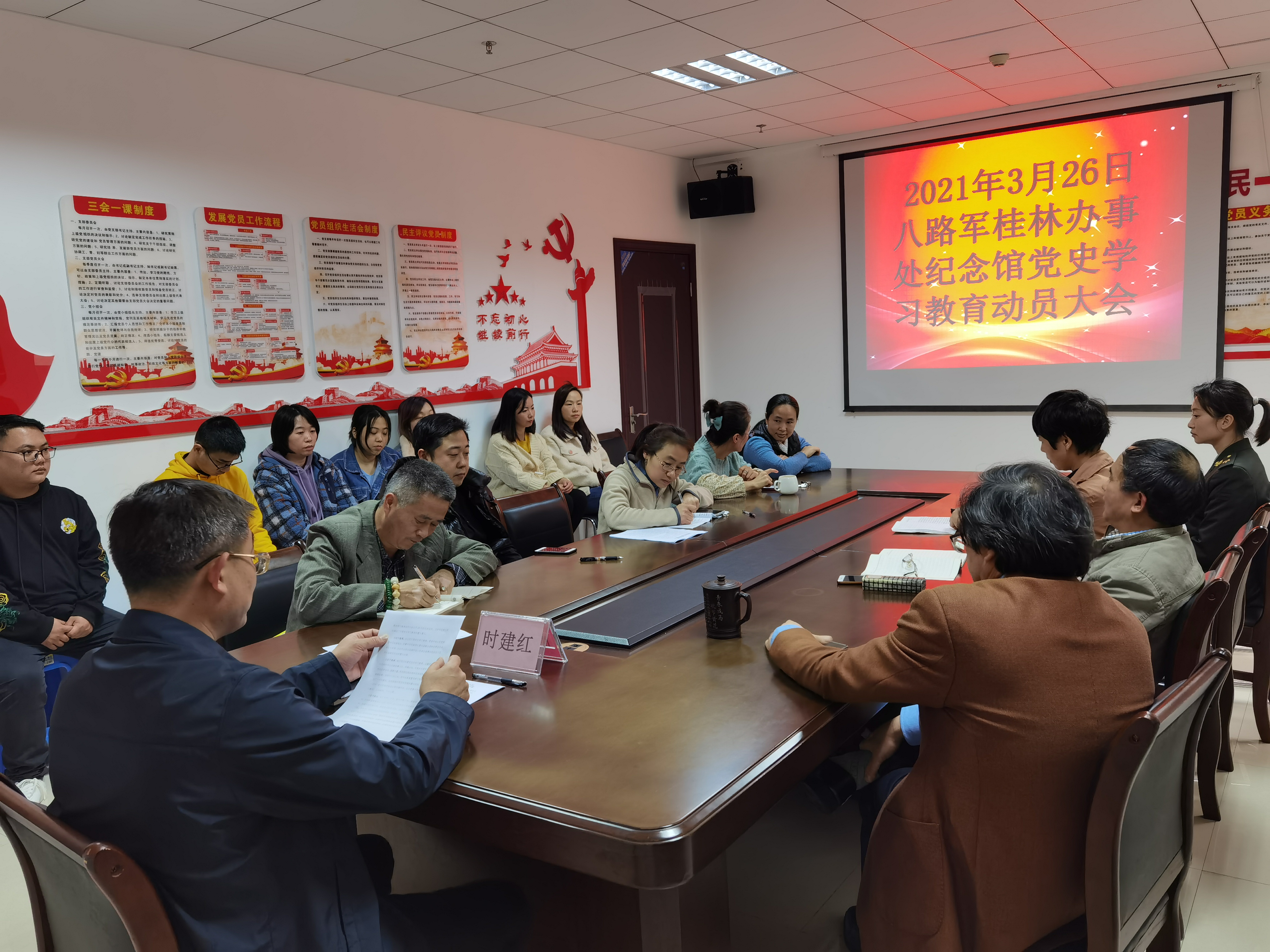2021年3月26日,我馆召开党史学习教育动员大会,全馆党员、讲解员参加会议。深入学习贯彻习近平总书记在全国党史学习教育动员大会上的重要讲话精神,落实全区、全市党史学习工作要求,扎实安排部署全馆党史教育工作,引导全馆上下学史明理、学史增信、学史崇德、学史力行,做到学党史、悟思想、办实事、开新局。