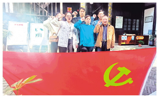 现如今的救亡日报旧址已成为红色教育基地。图为3月24日,秀峰区秀峰街道中心广场社区党委组织辖区党员和群众在此开展“学党史,忆初心”主题党日活动。记者陈静 摄