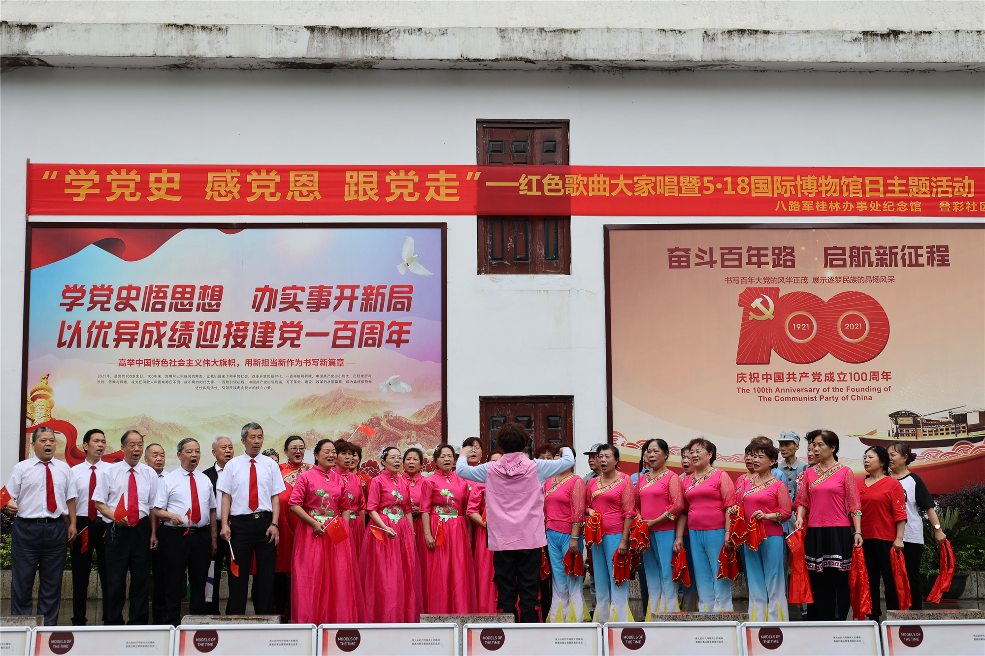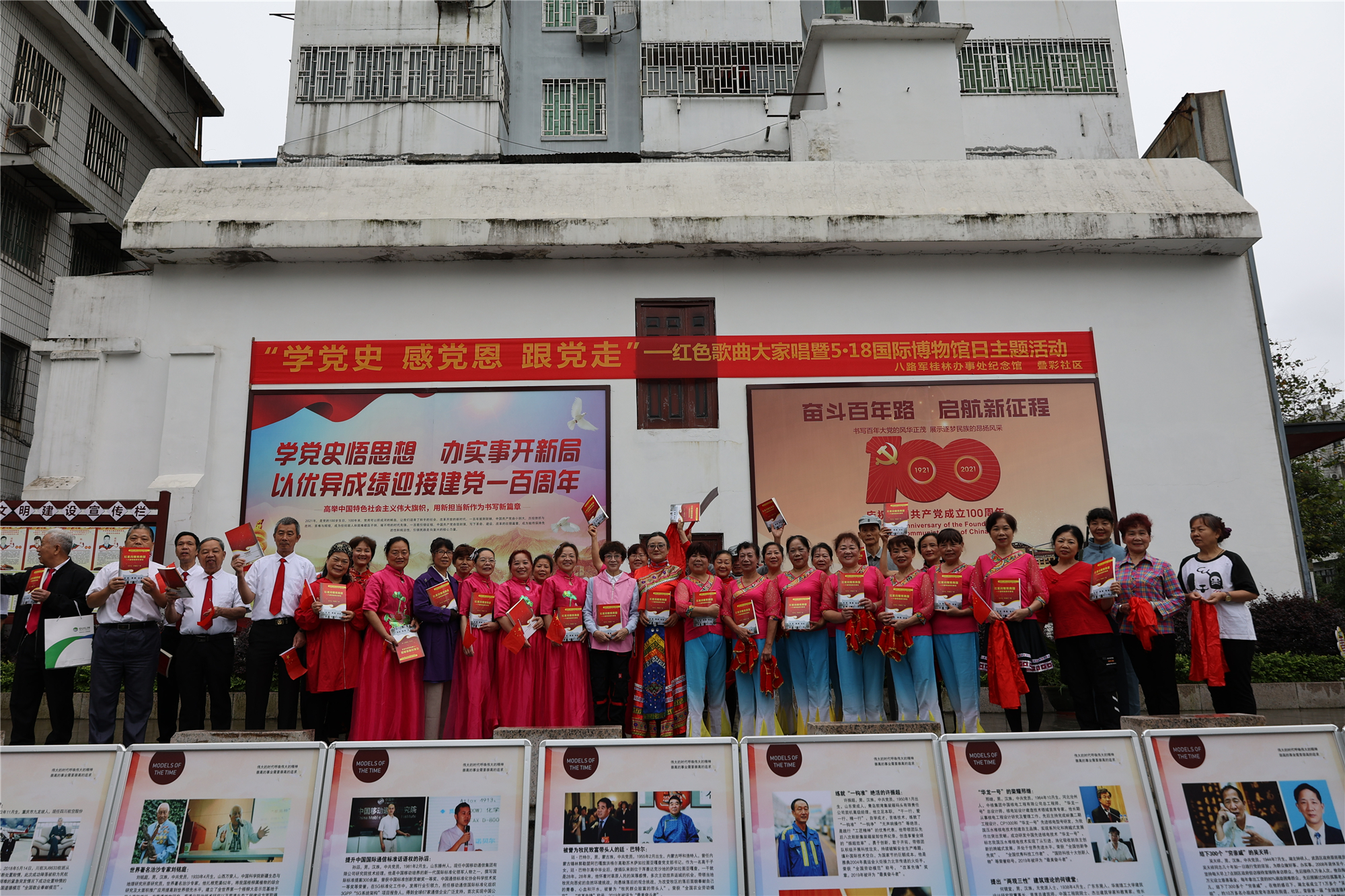 (叠彩社区党支部组织志愿者进行红歌合唱)