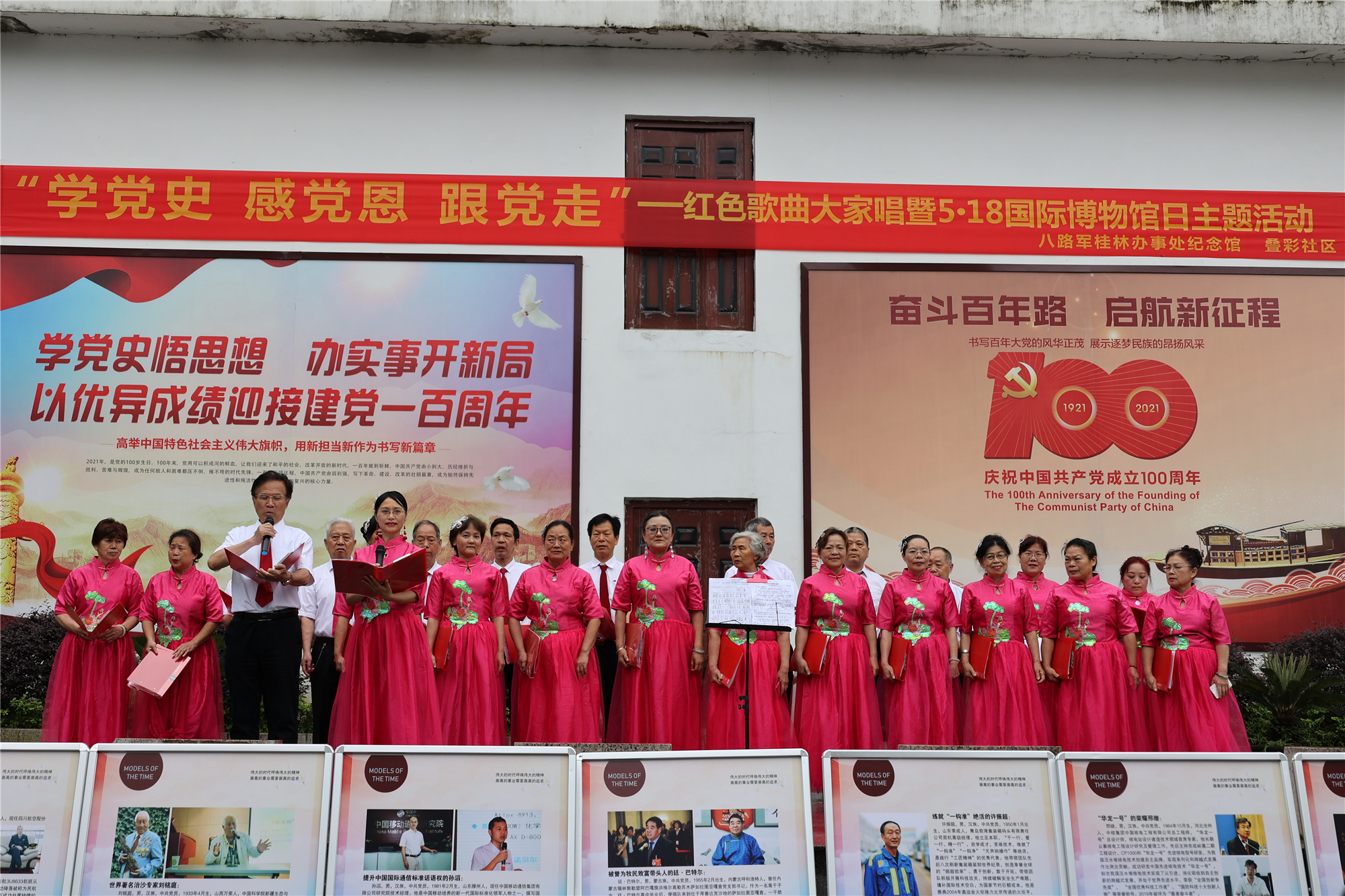 今年是建党100周年,一百年风雨兼程,一世纪沧桑巨变,为做到学党史、悟思想、办实事、开新局,切实增强“四个意识”、坚定“四个自信”、做到“两个维护”。我馆携手叠彩社区开展了“学党史,感党恩,跟党走”暨5·18国际博物馆日主题活动,社区的志愿者们也借此良机满怀热烈地用自己的歌声和舞蹈表达了他们对党的热爱、感恩之情。同时,我馆推出巡回展览《时代楷模——新时代最美奋斗者》,该展览展示了121位具有代表性、典型性的新时代先进人物。讲述“最美奋斗者”与共和国同成长、共奋斗的感人故事,奏响新中国奋斗交响曲,唱响新时代奋斗者之歌。