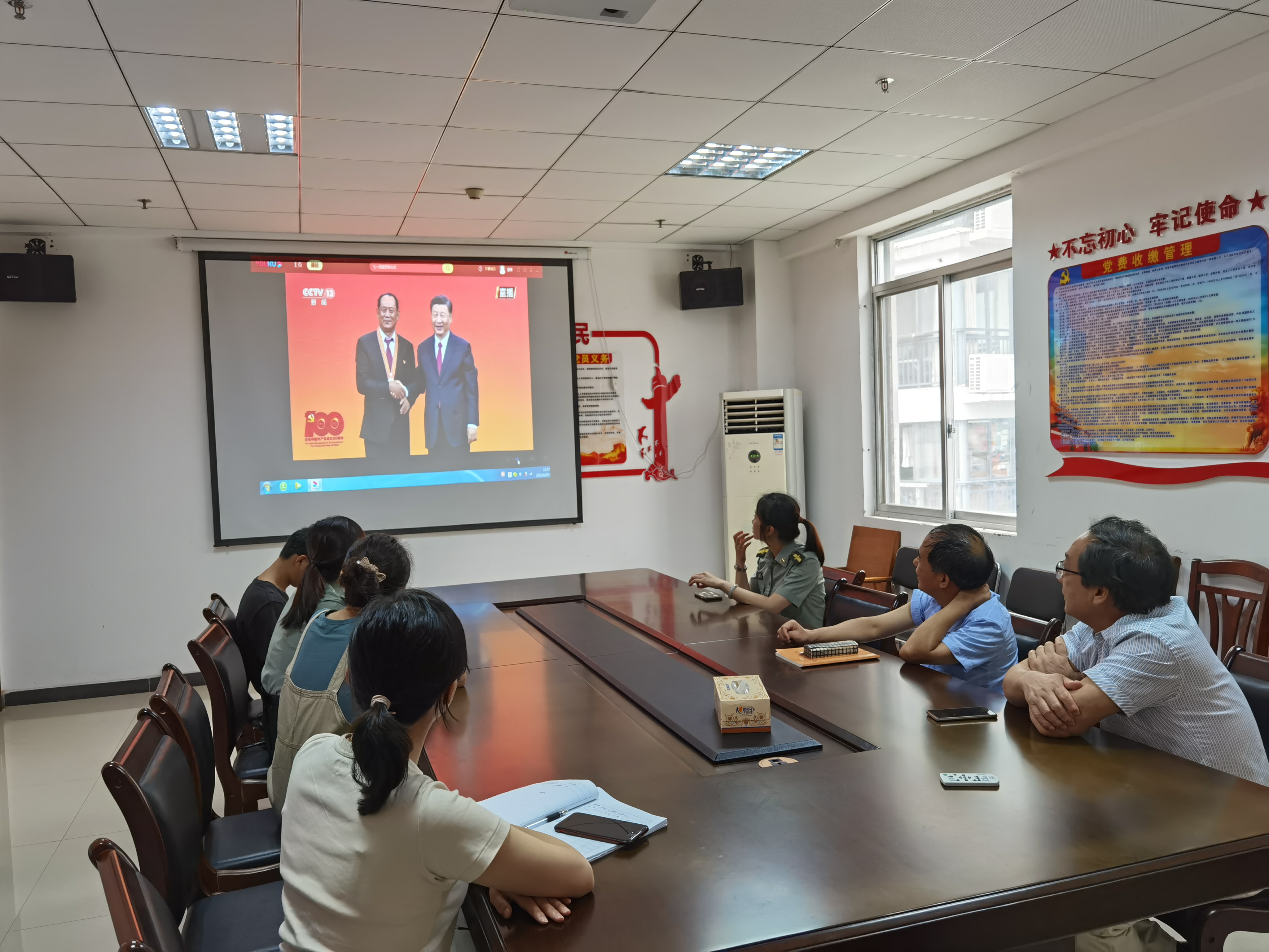 我馆组织广大党员干部、工作人员观看了“七一勋章”颁授仪式,认真领会习总书记讲话的重要精神,学习了被授予勋章的全国优秀共产党员、工作模范的先进事迹。