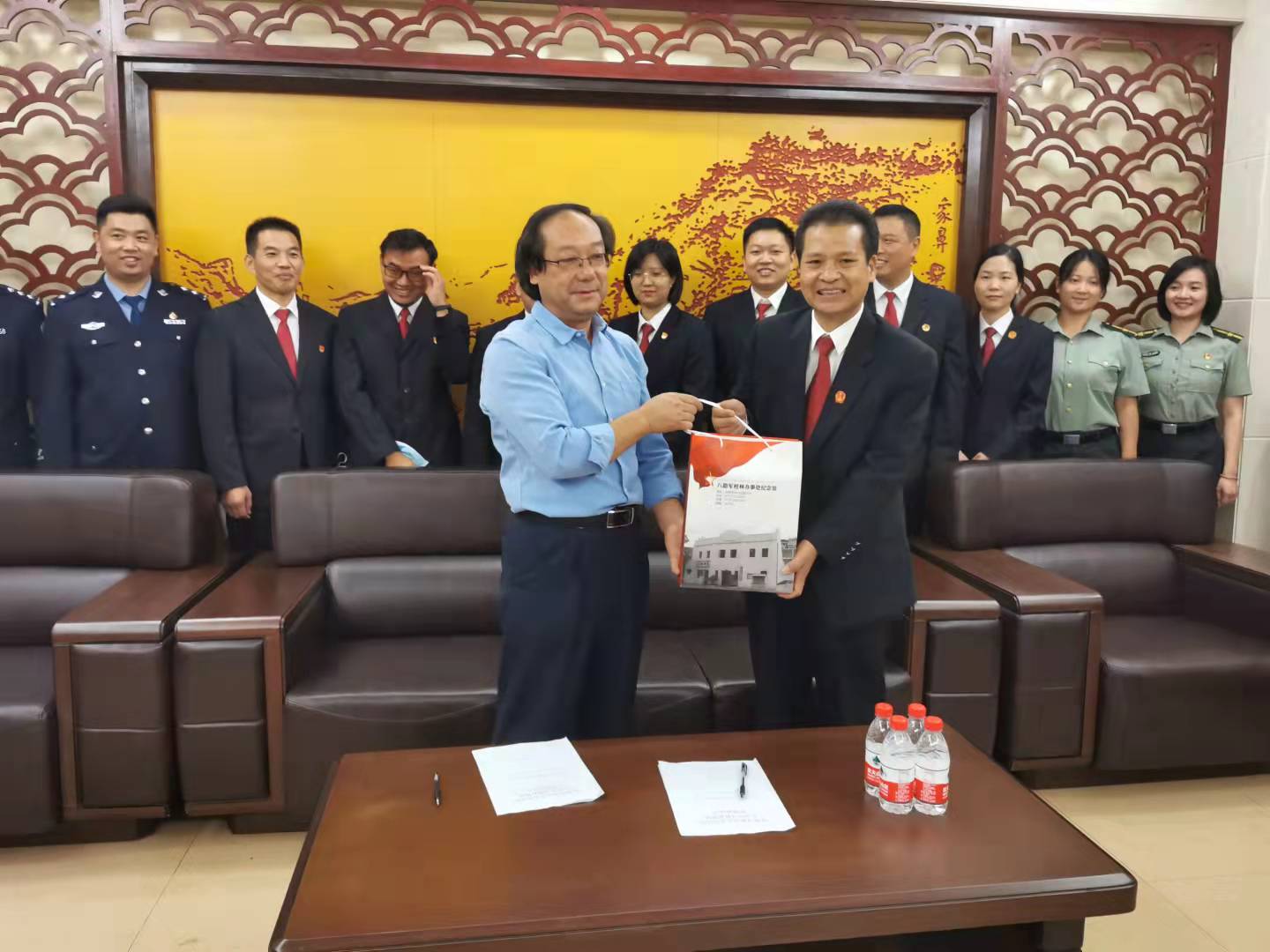 副馆长文丰义对象山区人民法院全体干警的到来表示热烈欢迎。他说,在中国共产党成立100周年,全党上下开展党史学习教育之际,在八路军桂林办事处纪念馆揭牌党史学习教育基地,是合作开展党性教育的典型做法,更能够充分发挥党史教育基地作用,引导广大党员干部在学党史中回望初心,坚定信念,勇担使命,传承红色基因,赓续光荣传统和优良作风。热烈欢迎象山区人民法院全体干警的到来。