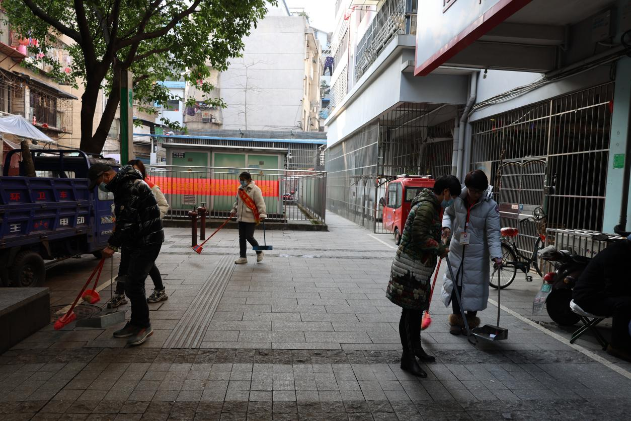 志愿者们来到叠彩社区,开展疫情防控宣传暨大扫除活动,清理垃圾杂物,除尘防病,清理卫生死角。