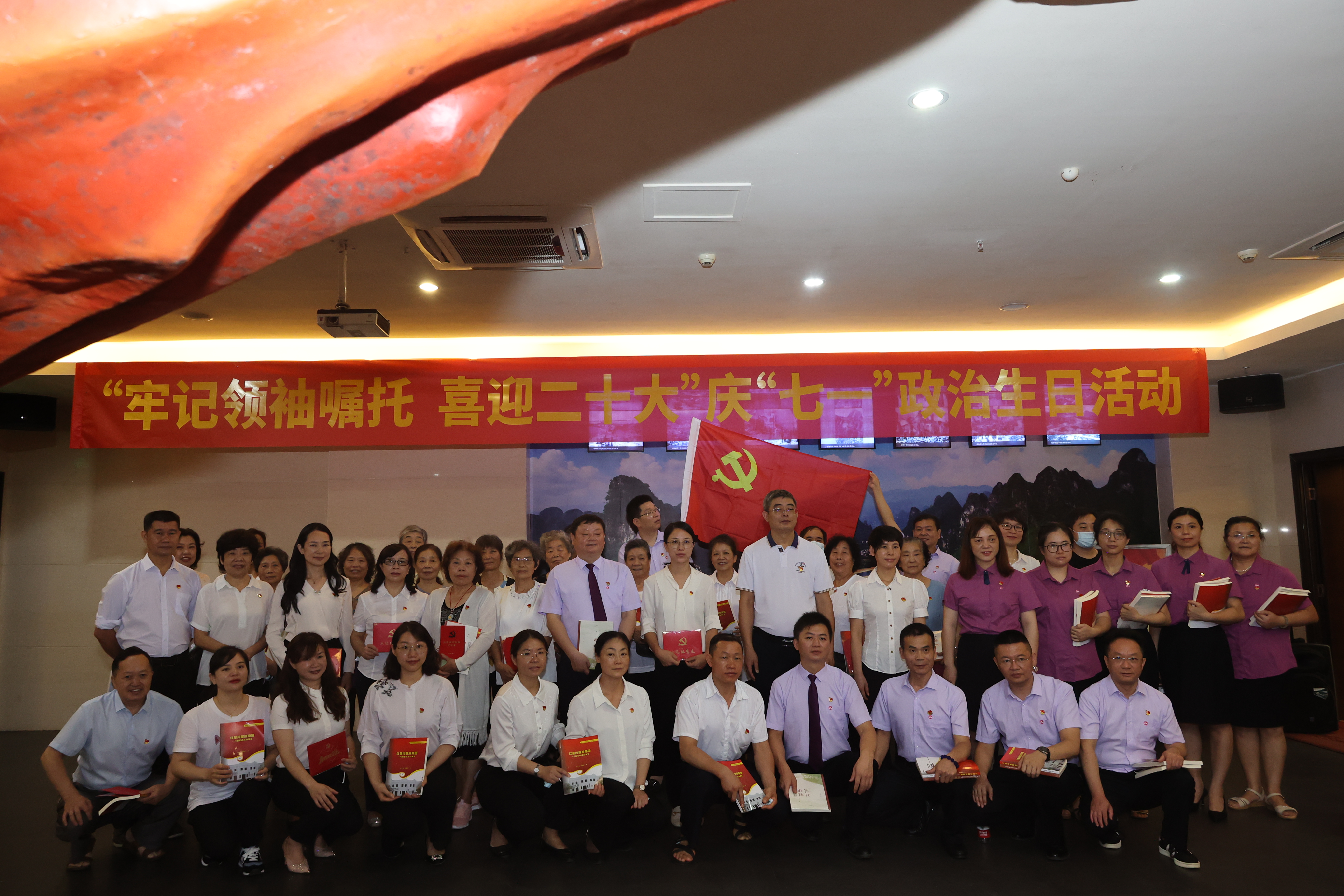党的生日即将来临,为进一步强化全体党员政治身份认同,增强党员的归属感、责任感、荣誉感,6月27日,八路军桂林办事处纪念馆党支部联合桂林市妇联、桂林市妇女儿童医院党支部组织开展“牢记领袖嘱托 喜迎二十大”庆“七一”政治生日活动,为三个党支部50余名党员集体过政治生日,通过这一重要政治仪式,校准思想、坚定信仰,切实发挥党员先锋模范作用。