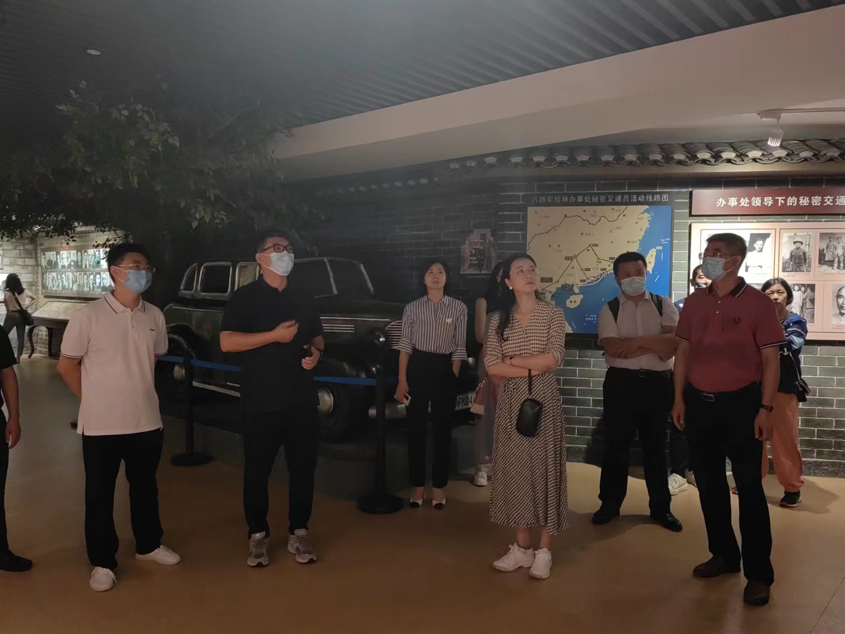 郝戎一行首先到八路军桂林办事处旧址考察调研,并参观了“抗日烽火映桂林”陈列展览。八路军桂林办事处于1938年11月成立,是八路军设在南方一带的公开办事机构和中共中央南方局秘密派出机关,处长为李克农同志。“抗日烽火映桂林”陈列展览全面贯穿“共产党领导广西抗战”全过程,全面反映了广西各族人民“全民抗战”、“文化抗战”和“武装抗战”的战斗历程。调研组一行认真参观了馆内陈列的大量图片、实物和文献资料。
