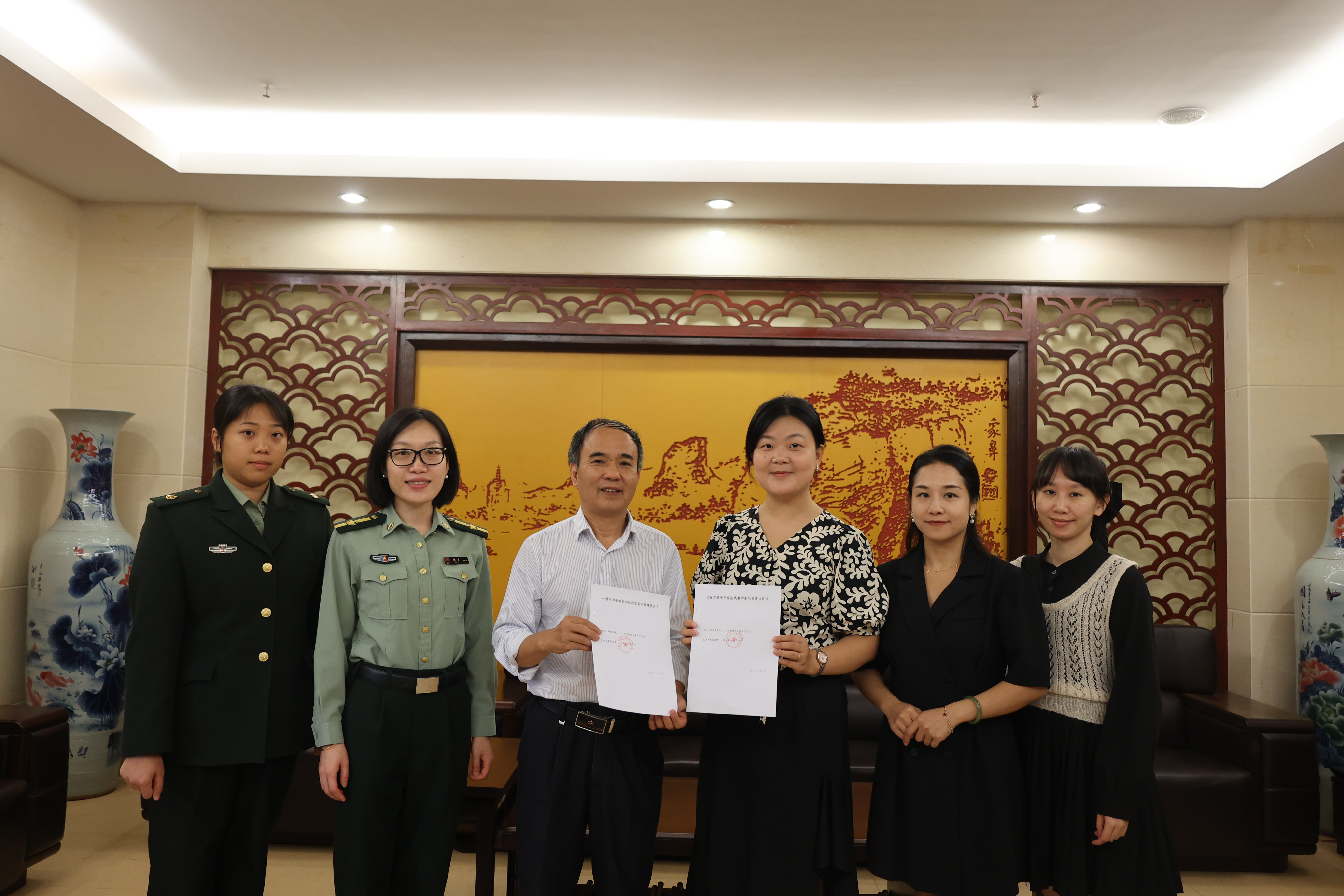 (我馆与桂林市聋哑学校签订实践教学基地共建协议书并合影留念)