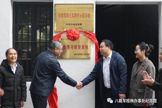 为推进党史学习教育不断走深走实,积极开辟思想政治教育阵地,共建共享红色教育基地,推动传承、弘扬和践行革命精神,2023年12月8日,桂林信息科技学院机电工程学院第一学生党支部到八路军桂林办事处纪念馆挂牌党史学习教育基地。机电工程学院党委书记文超、八路军桂林办事处纪念馆馆长时建红、八路军桂林办事处纪念馆业务部主任唐军富出席揭牌仪式。