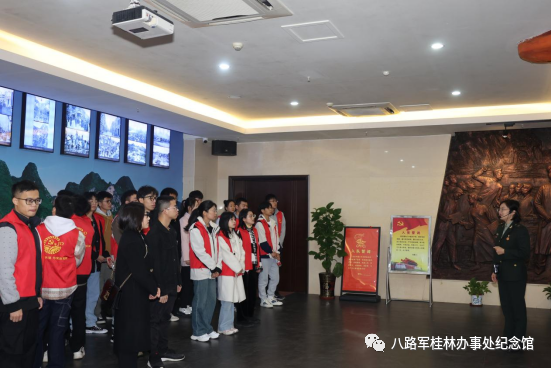 八路军桂林办事处纪念馆馆长时建红对桂林信息科技学院机电工程学院第一学生党支部全体师生的到来表示热烈欢迎。他在发言中详细介绍了八路军桂林办事处的诞生以及其为桂林抗战文化事业作出的历史贡献,并表示八路军桂林办事处纪念馆自建馆以来,始终坚持以宣传和弘扬革命精神、进行爱国主义教育为己任,以珍贵的革命文物和历史资料为依托,广泛开展革命传统和爱国主义教育,取得了良好的社会效益,未来也将进一步发挥纪念馆在大学生思想政治教育方面的重要作用,让红色基因薪火相传。希望大家在学习和生活中树立正确的理想、坚定的信念,努力成长为堪当民族复兴重任的时代新人。