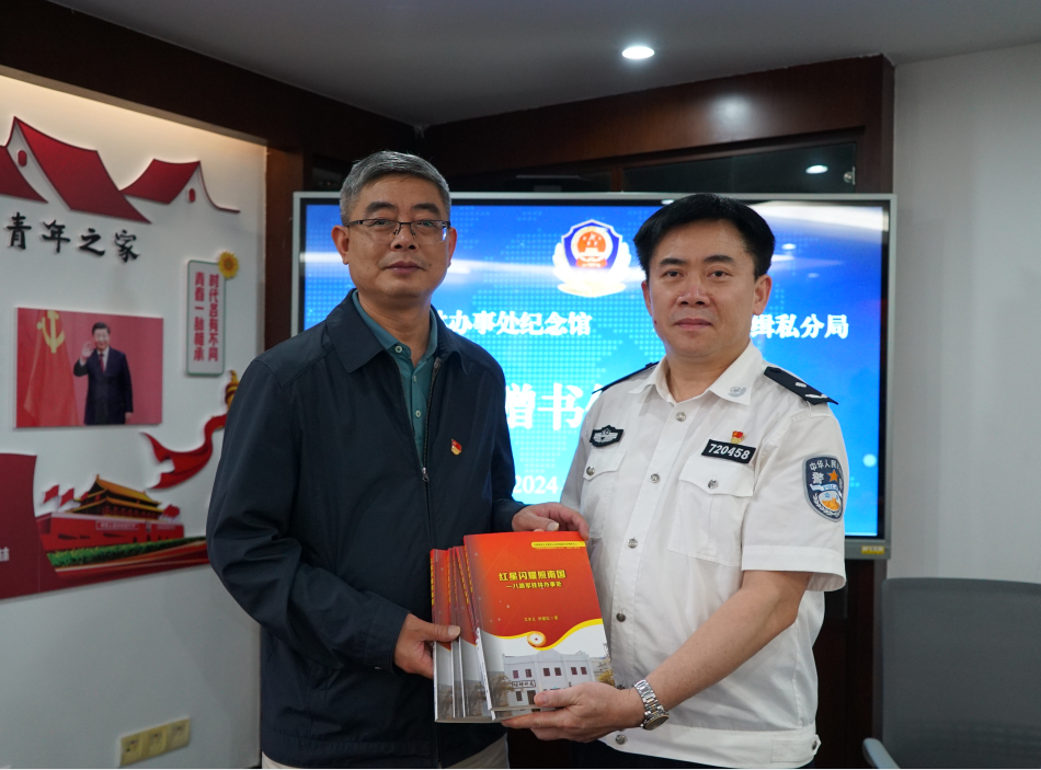 为充分发挥八路军桂林办事处纪念馆、桂林海关缉私分局整体优势,提高八路军桂林办事处纪念馆公共文化服务保障水平,实现文化资源共享、党团建设经验互通、文化交流互融,2024年4月19日,八路军桂林办事处纪念馆全体党员赴桂林海关缉私分局举行主题党日活动:参观党建长廊,进行了座谈交流并向桂林海关缉私分局赠送书籍。八路军桂林办事处纪念馆馆长时建红,桂林海关缉私分局局长农伟东代表双方签订《八路军桂林办事处纪念馆、桂林海关缉私分局党团共建融合发展协议书》。