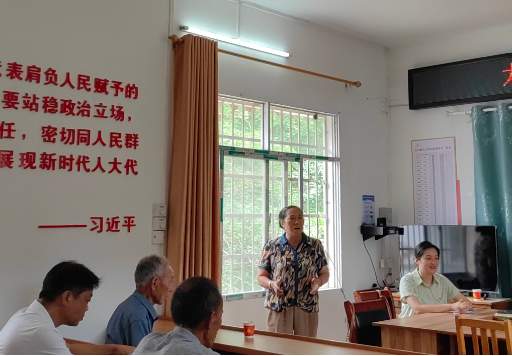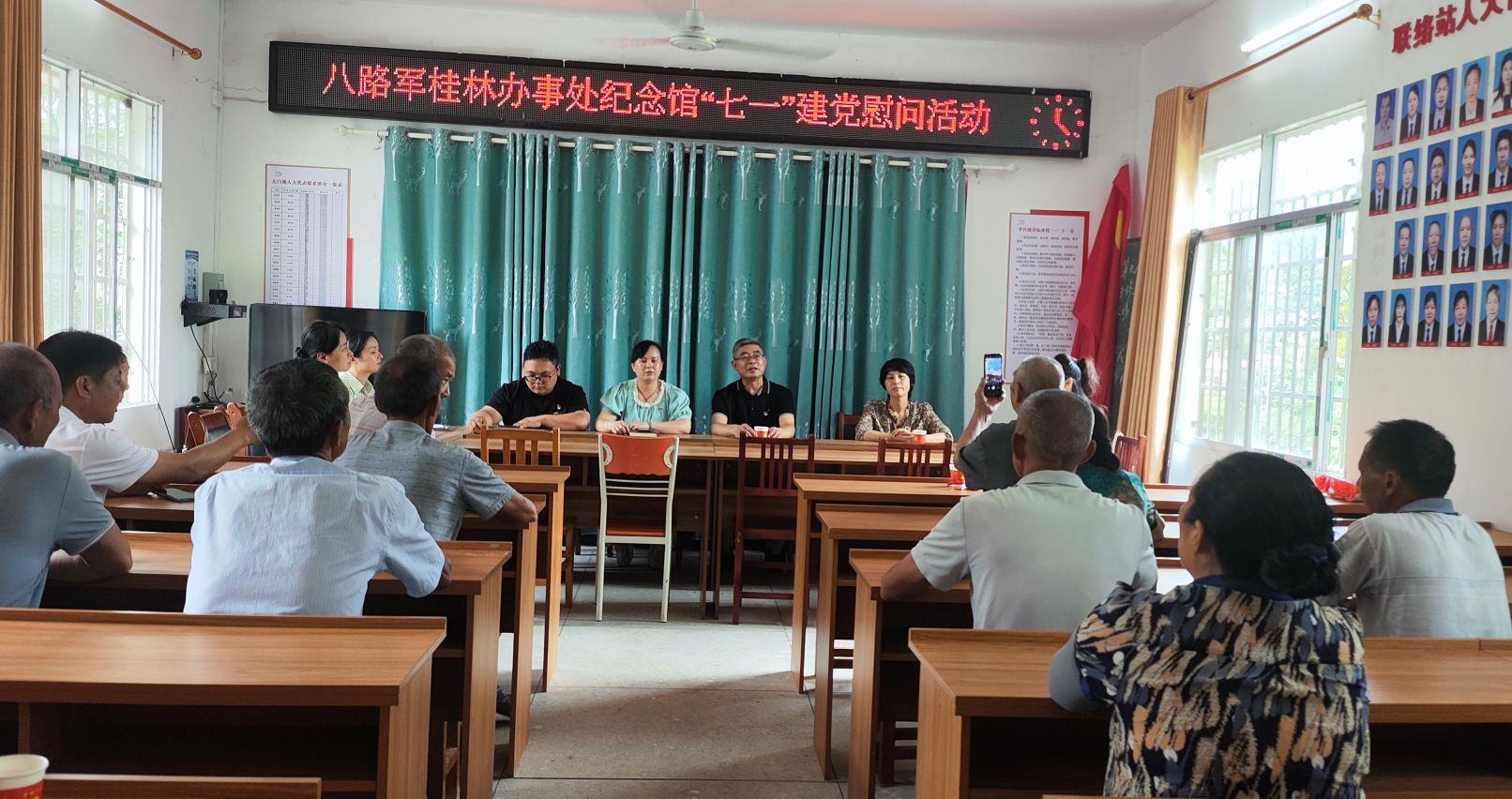 座谈结束后,八路军桂林办事处纪念馆李文麒讲述红色革命故事,通过故事分享会的形式,让太白地村党员身临其境感受了革命先辈一往无前的英雄气概和坚韧不拔的革命精神。村委代表唐高荣演唱红色歌曲,通过歌声,传递了对党的热爱和对后盾单位的感谢。