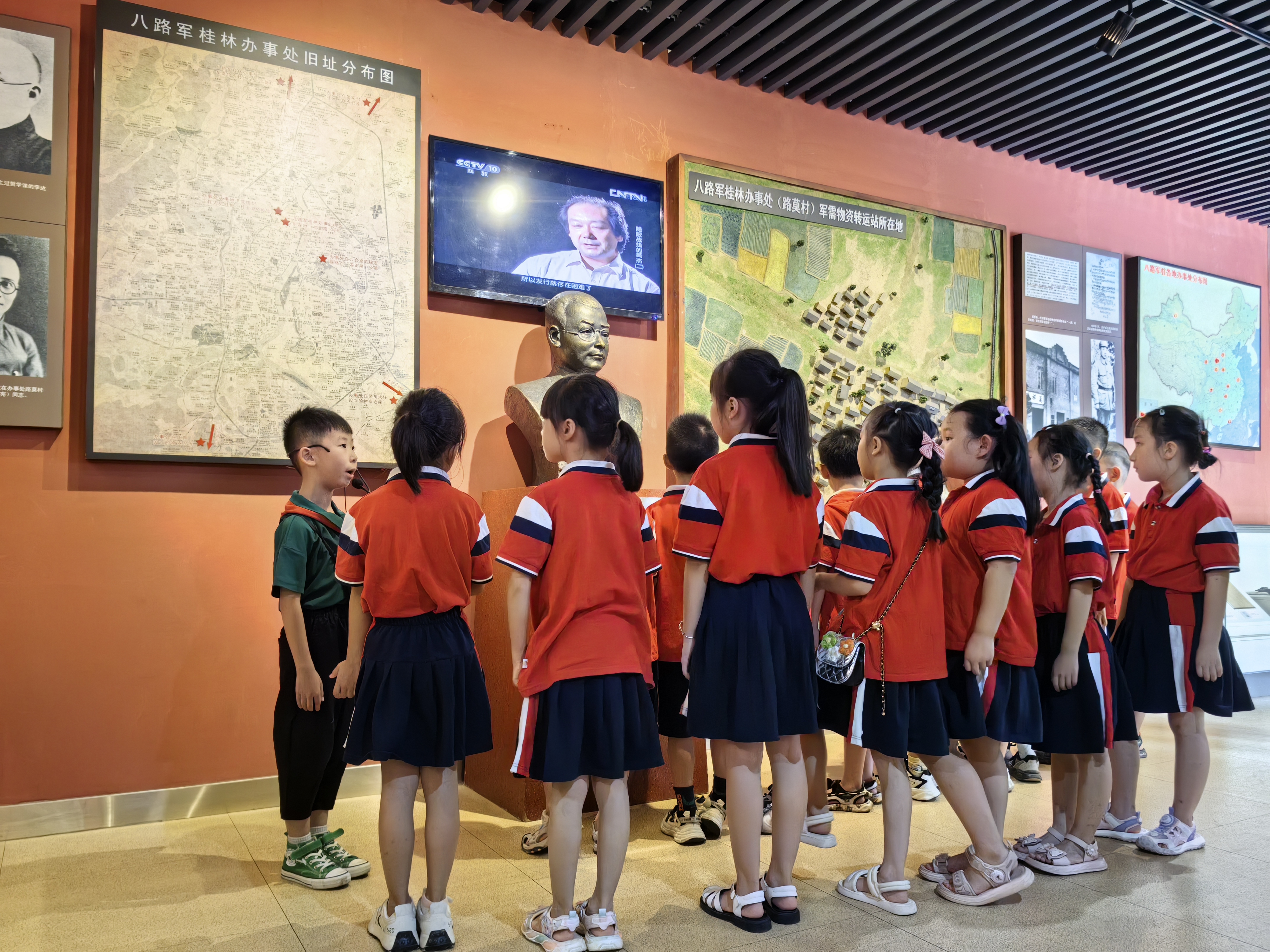 为进一步学习贯彻党的二十大精神,切实践行纪念革命先烈,传承红色基因,弘扬英烈精神的美德,以实际行动来继承先烈遗志,知党恩,跟党走。2024年7月11日,桂林市象山区教育局开展“社会主义核心价值观“教育实践系列活动(大风山一小专场),大风山一小组织2023级2班全体师生到八路军桂林办事处纪念馆参观学习。