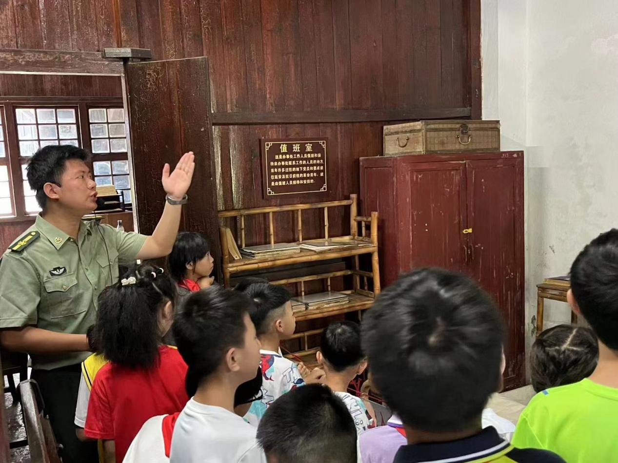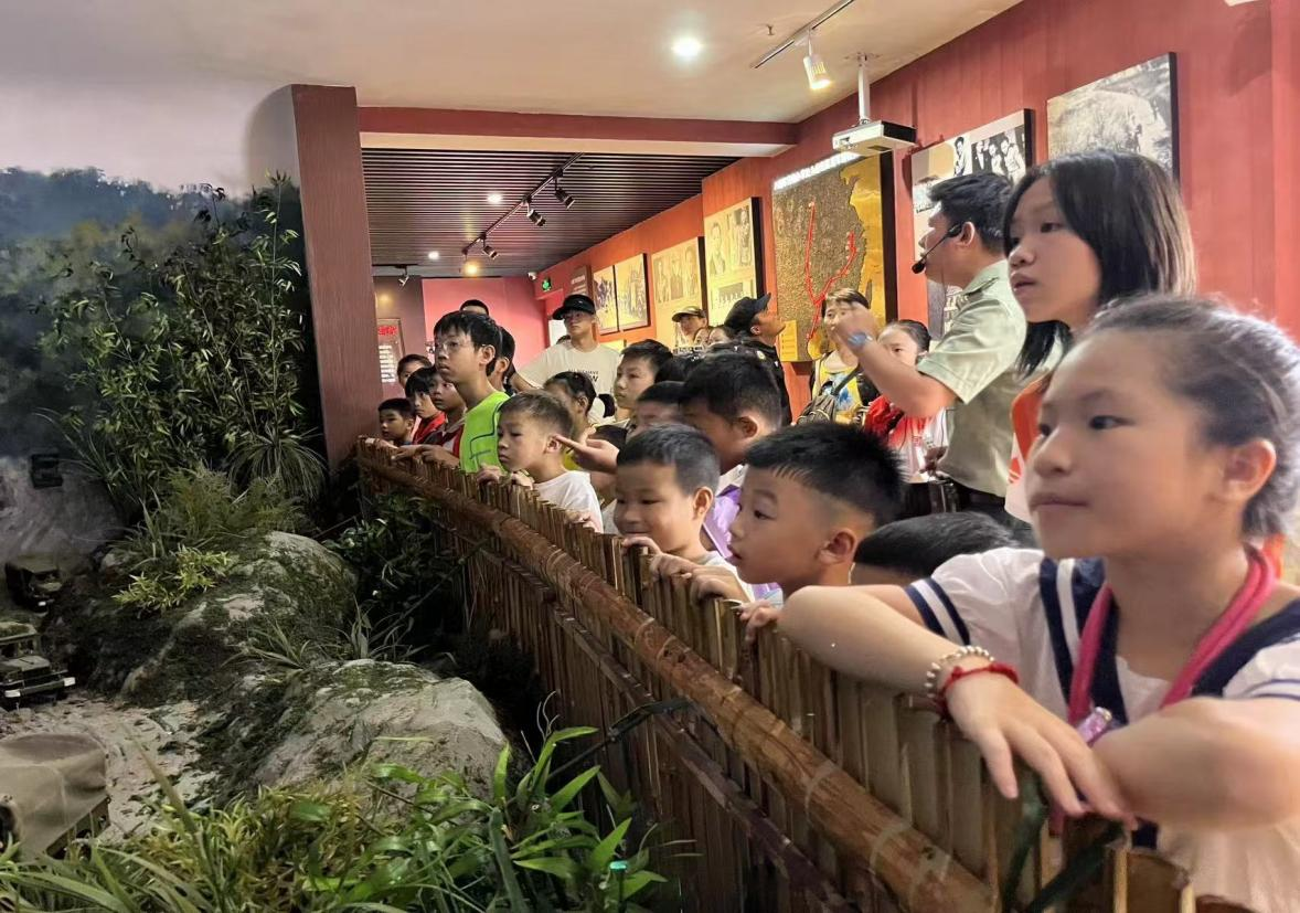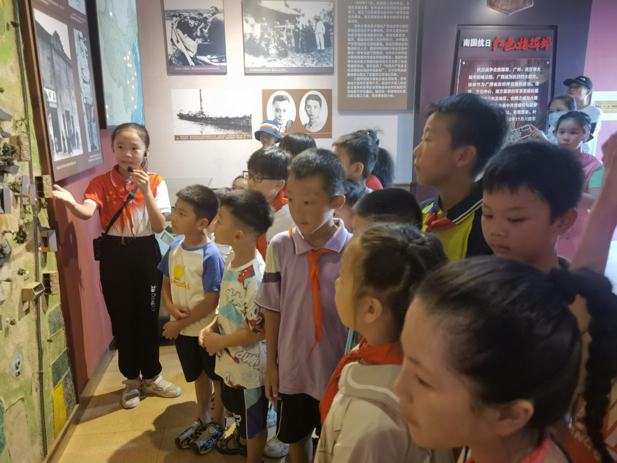 形式二:暑假期间,八路军桂林办事处纪念馆的红领巾志愿者积极发扬志愿服务精神,为来到馆内参加研学活动的孩子们进行讲解、观察文物、观看仿真场景,以孩子们的视角了解抗战时期桂林城的故事。