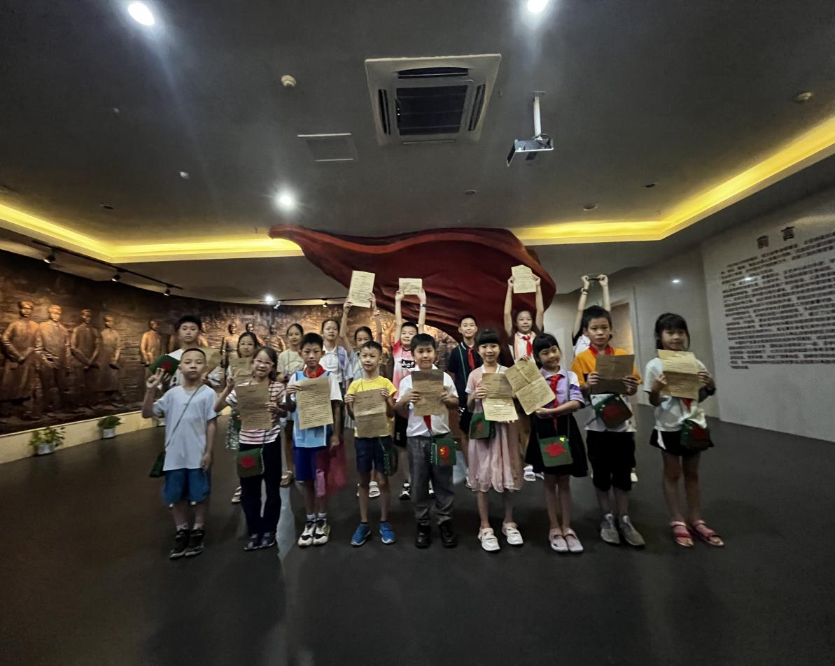 活动结束后,讲解员与孩子们带着自己亲手制作的红色公文包合影留念。
