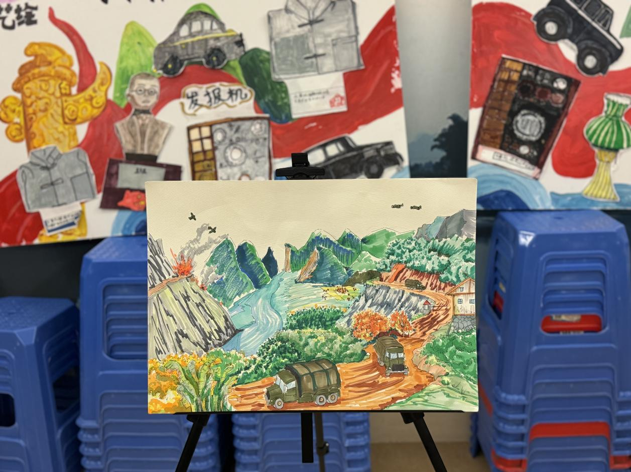 在老师精心指导下孩子们专心创作,充分发挥想象力,手中的铅笔在纸上挥舞,描绘出他们心中的红色纪念馆。
