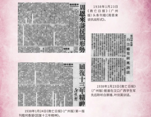 展览第二部分“转战广州”讲述了抗日战争时期上海沦陷后,《救亡日报》社转移至广州,在周恩来办报方针的指示下继续办报。
