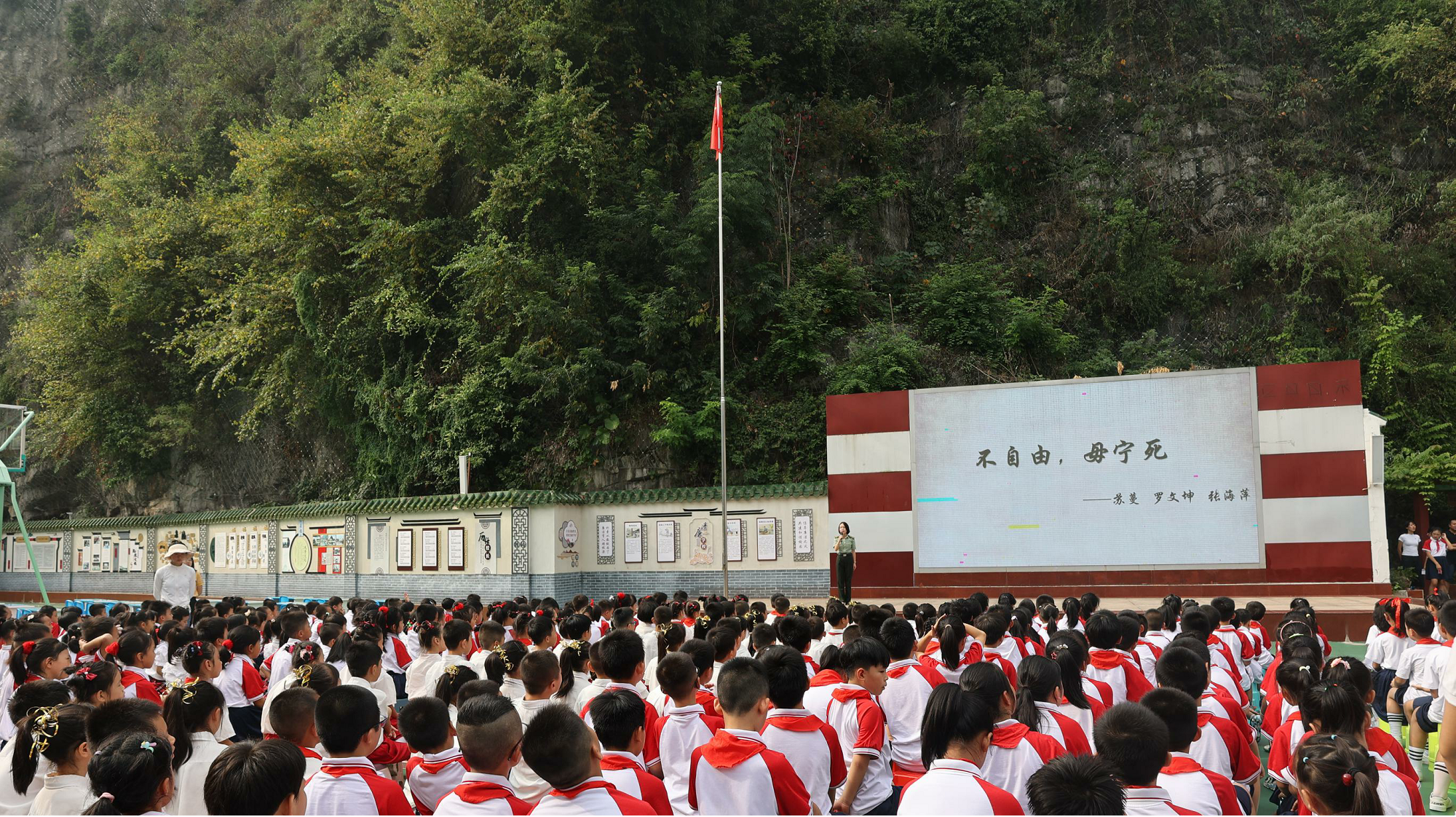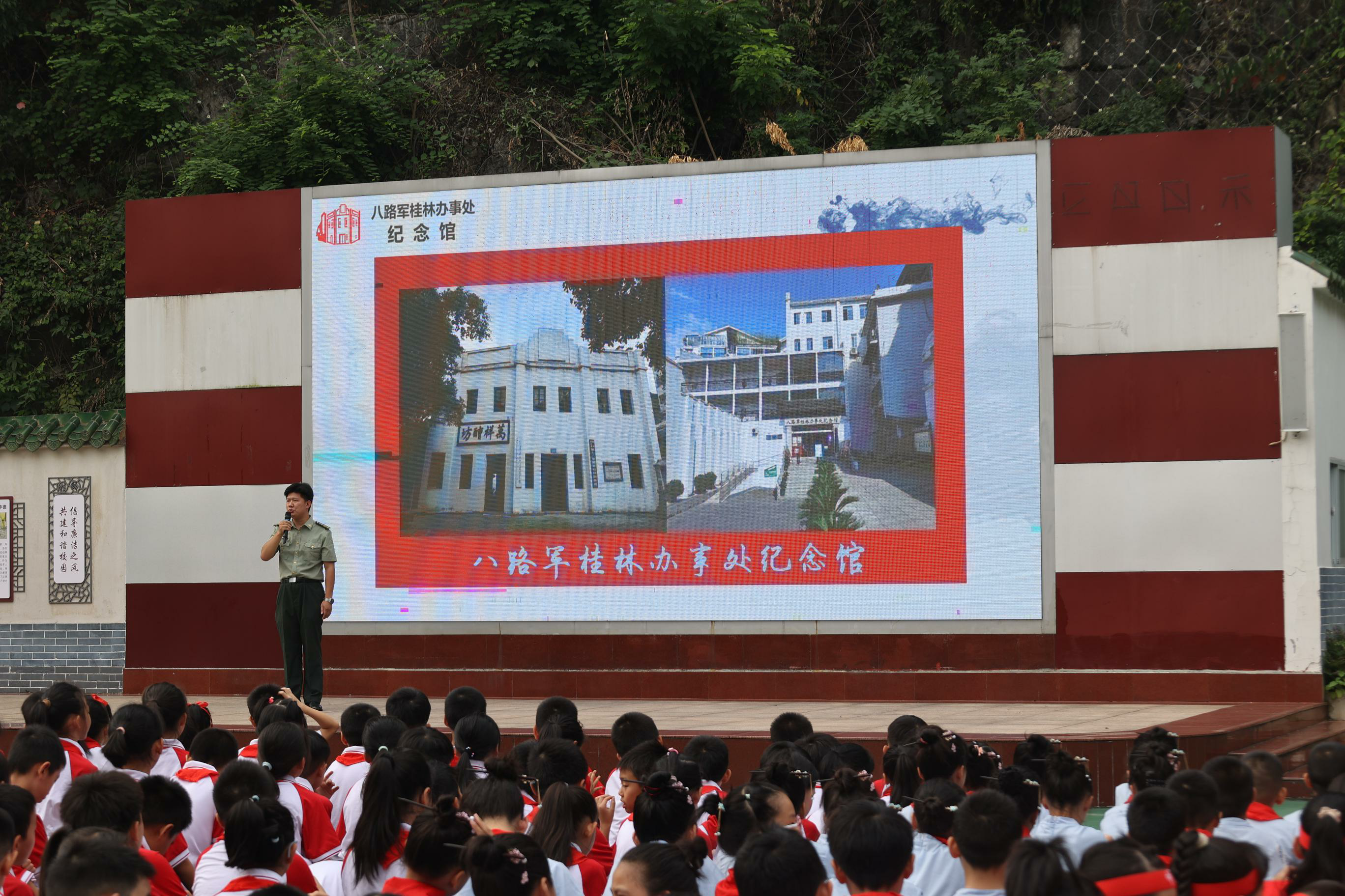 活动中,桂岭小学202班学生献上庆国庆情景表演,用稚嫩童声表达对祖国的热爱。随后,八路军桂林办事处纪念馆的讲解员们依次上台为桂岭小学的师生讲述红色故事。