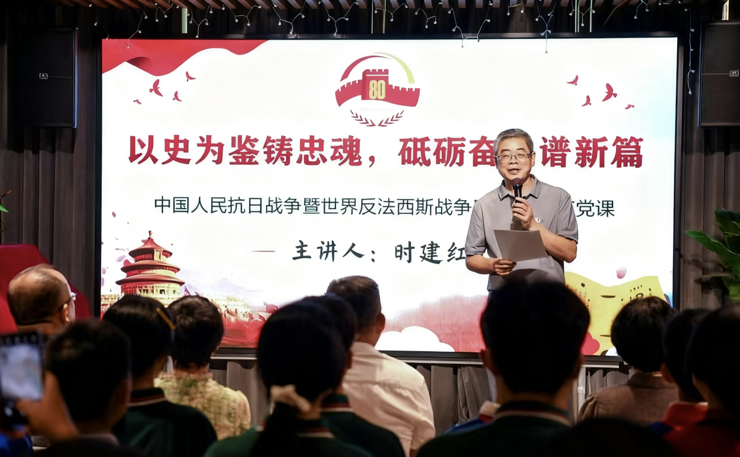 随后进行的“红领巾映初心・共绘抗战魂”共建主题党课、纪念品制作及牌匾授予仪式,将党史学习与互动实践有机融合。八路军桂林办事处纪念馆馆长时建红主讲的“以史为鉴铸忠魂,砥砺奋进谱新篇”主题党课,以详实的史料、鲜活的故事,深情回顾了中国人民从局部抗战到全面抗战14年间所进行的艰苦卓绝的抗战历程,以及桂林作为抗战大后方的战略地位和历史贡献,使在场党员、团员和少先队员深刻认识到抗战胜利的艰辛与伟大。