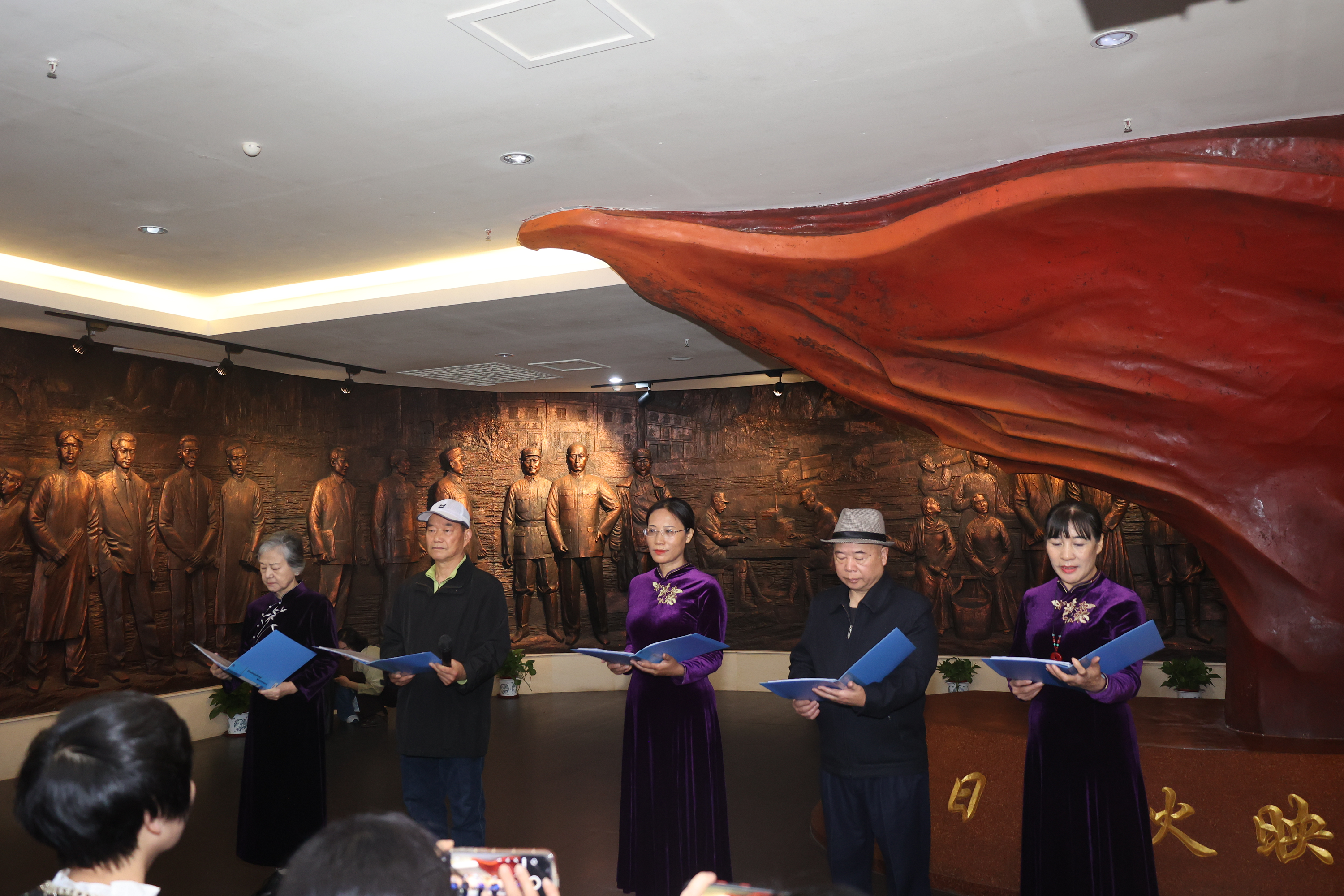 此次诗会,八路军桂林办事处纪念馆副馆长万玉琴致辞, 桂林市老年大学副校长黄克忠做了讲话。红色诗词朗诵会在激昂澎湃的 “红色诗篇联诵”中正式拉开帷幕。桂林市老年大学的学员们精神饱满、语调铿锵,将多首经典红色诗词串联演绎,带领现场观众穿越时空,回望烽火连天的革命岁月,感受革命先辈的家国情怀与信仰力量。