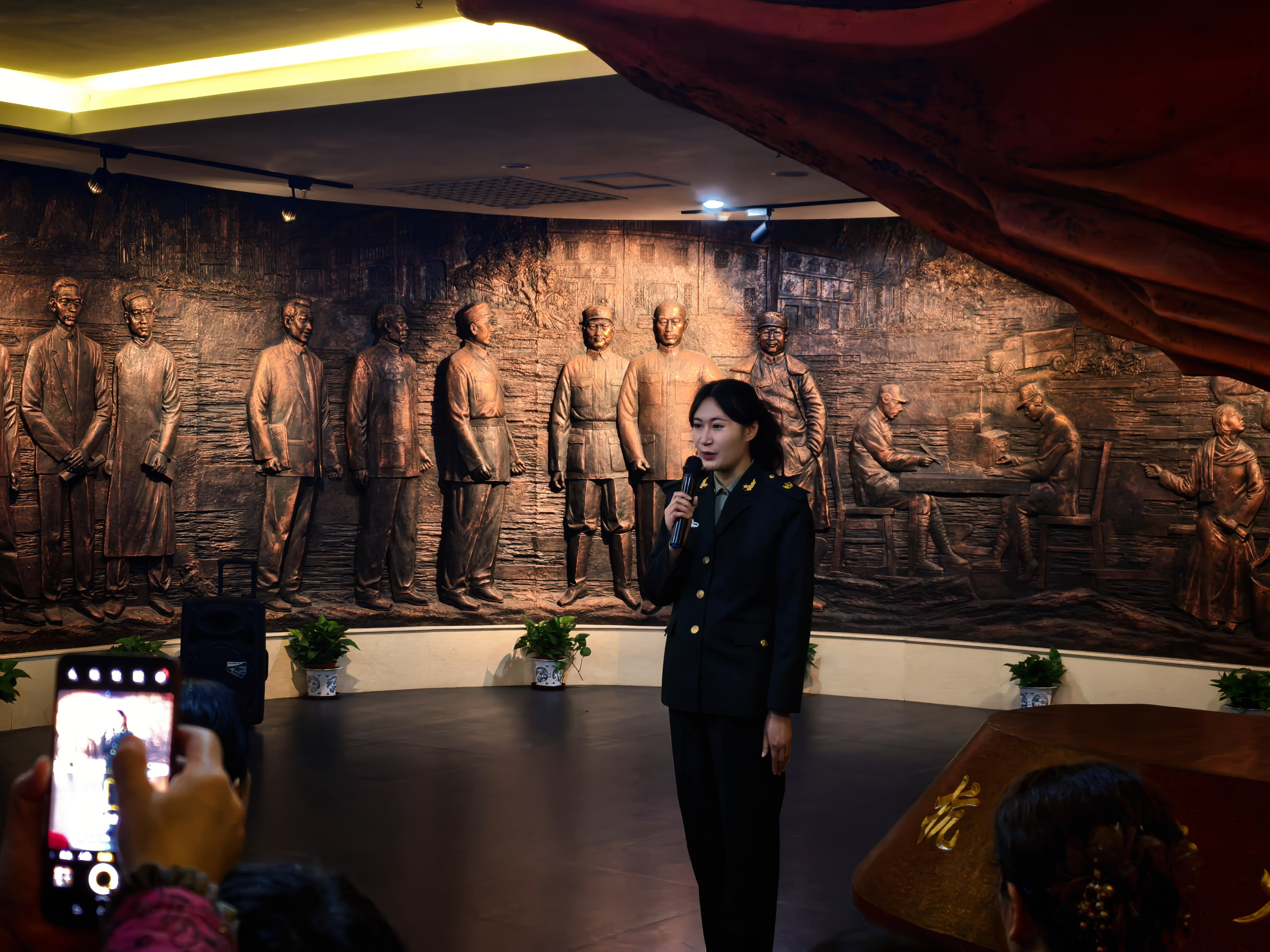 纪念馆讲解员轮番登场,带来极具感染力的红色故事分享。《用生命谱写青春之歌》以细腻的讲述还原了革命青年怀揣理想、以热血浇灌信仰的悲壮故事,真挚的情感让现场观众深受触动;《半边石锁》则聚焦馆藏革命文物,通过解读石锁背后的历史故事,挖掘廉洁元素,让观众从革命文物中读懂老一辈无产阶级革命家的廉洁之心,实现红色教育与廉洁教育的同频共振。