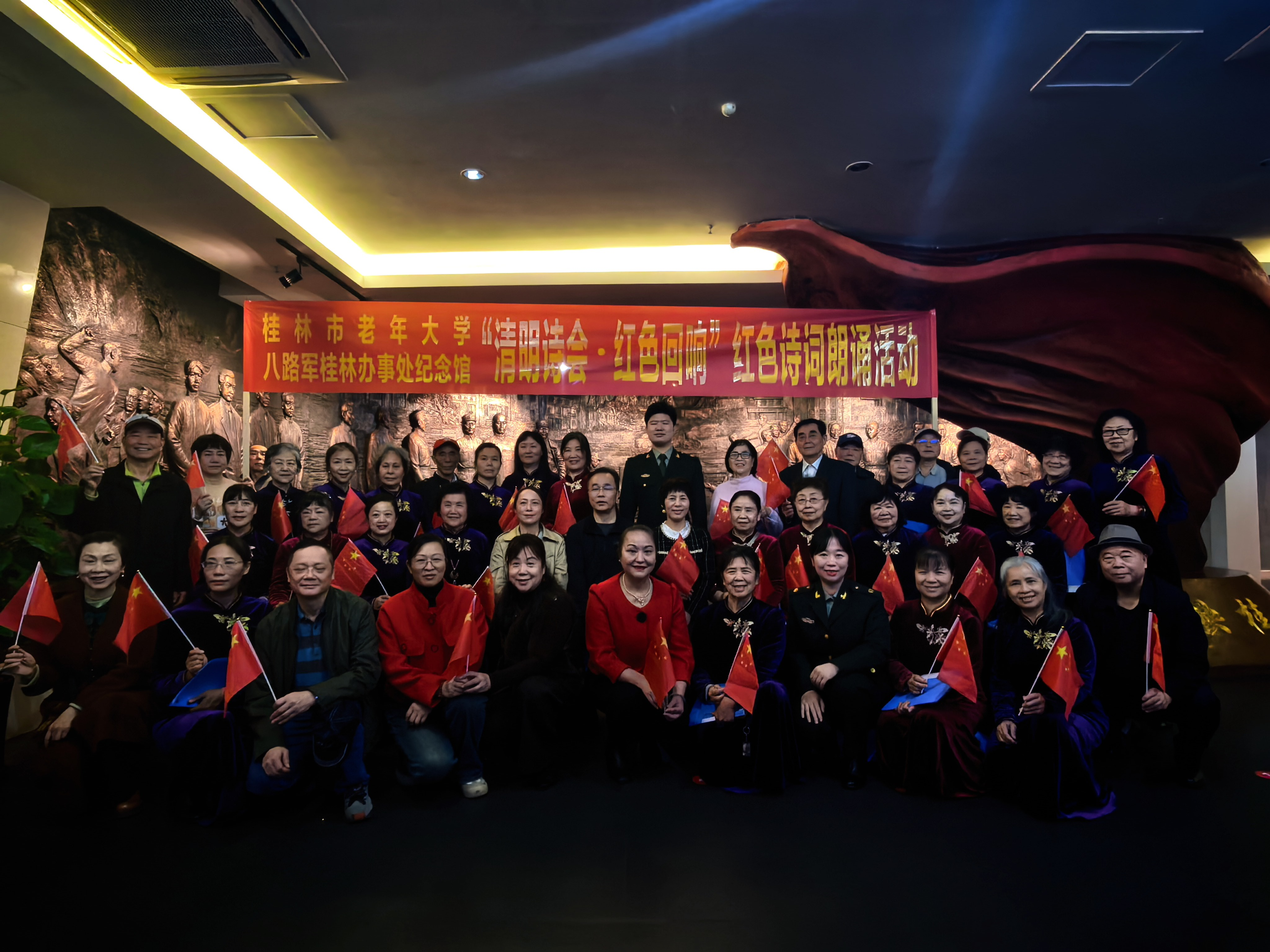 本次红色诗词朗诵会依托八路军桂林办事处纪念馆丰富的红色文化资源结合桂林市老年大学的文化风采,将诗词朗诵、文物故事、廉洁教育与实地研学有机结合,为市民游客呈现了一场兼具思想性、艺术性与教育性的文化盛宴,为清明祭扫增添了浓厚的文化内涵,推动红色基因与廉洁文化在新时代落地生根。